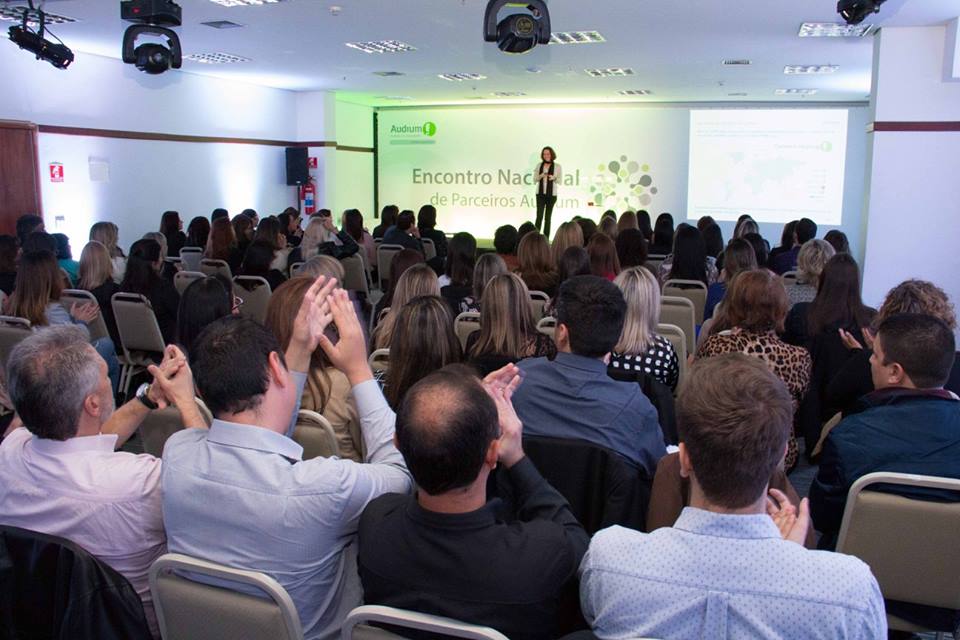 Dra. Maura com Alexandre Ferreira, diretor nacional, e Mariza Carvalho, gerente de treinamento e desenvolvimento Audium, em premiação pelo destaque no trabalho com o Lyric